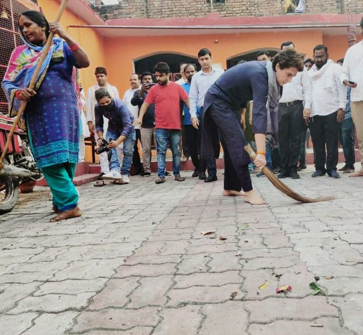 वाल्मीकि आश्रम में जाकर प्रियंका गांधी ने लगाई झाड़ू कहा यह स्वाभिमान की बात है