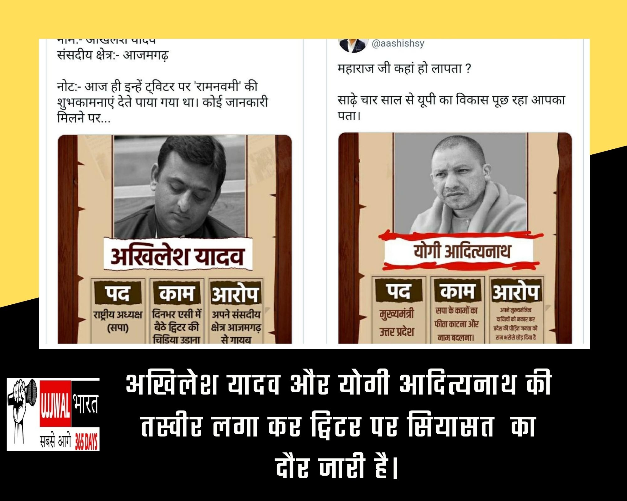 अखिलेश यादव और योगी आदित्यनाथ की तस्वीर लगा कर ट्विटर पर सियासत का दौर जारी है।