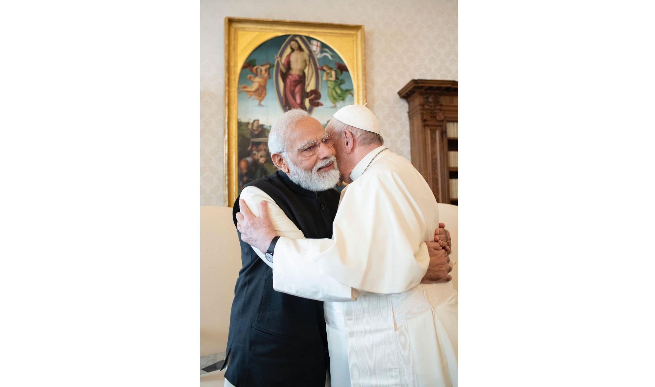 पोप फ्रांसिस को गले लगाते हुए तस्वीर साझा की और लिखा की "पोप फ्रांसिस से मुलाकात हुई और उनसे बहुत मुद्दों पर विचार करने...