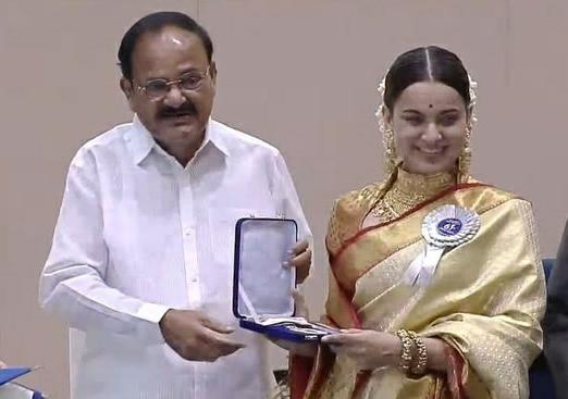 उपराष्ट्रपति वेंकैया नायडू द्वारा 67वें राष्ट्रीय फिल्म पुरस्कार से चौथी बार सर्वश्रेष्ठ अभिनेत्री के अवार्ड से सम्मानित हुई कंगना